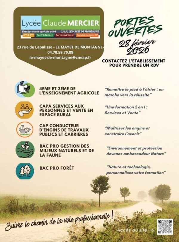Aujourd’hui, le Lycée d’Enseignement Agricole et Forestier Privé Claude Mercier est un acteur incontournable de la formation en milieu rural. Fortement ancré dans son territoire, il continue de répondre aux besoins des jeunes et des familles, fidèle à sa mission d’origine : former, accompagner et croire en l’avenir de chacun.