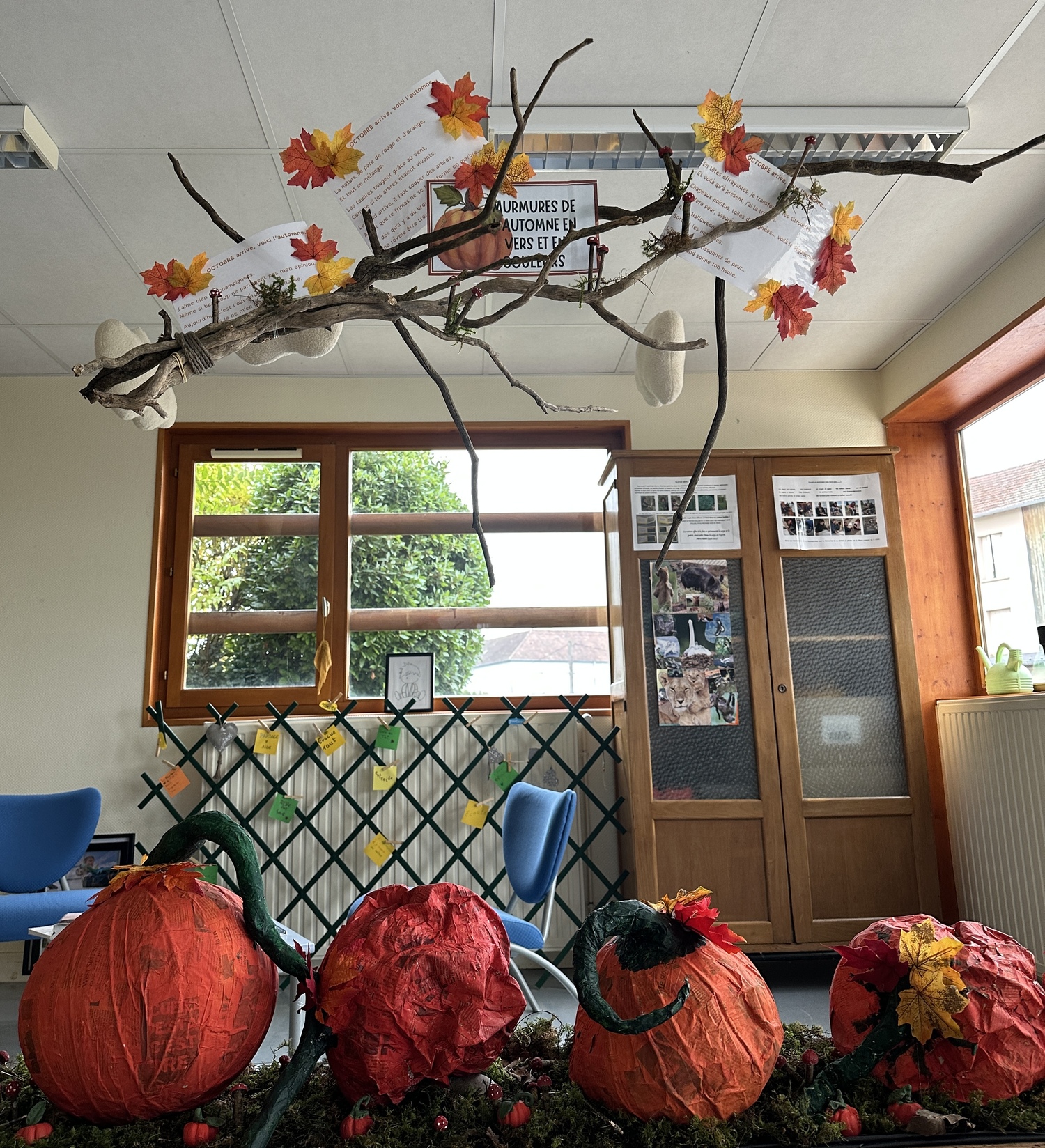 Cette petite exposition met ainsi en lumière la rencontre poétique et artistique de deux classes, où les mots se mèlent aux couleurs de l’automne.