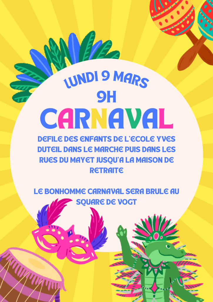 Le départ aura lieu à 9 h depuis l’école, pour une arrivée vers 10 h au square de Vogt , après un passage dans les rues du Mayet-de-Montagne jusqu’à la maison de retraite.