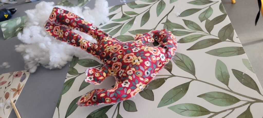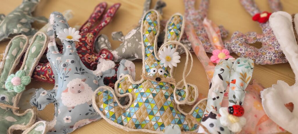 Dans le cadre de l’atelier passerelle créative, les élèves ont conçu et réalisé de petits lapins en tissu, mobilisant des compétences variées telles que le respect des étapes de réalisation, la précision du geste et le sens de l’esthétique. De petits cœurs ont également été confectionnés à partir des chutes de tissu.