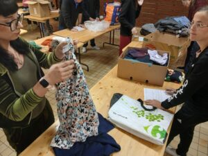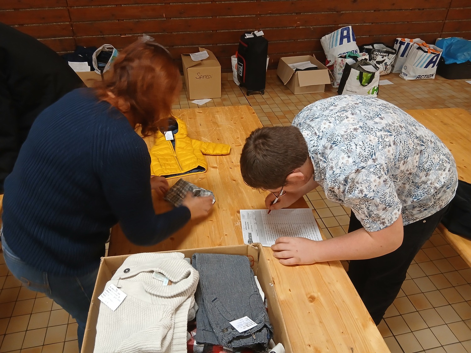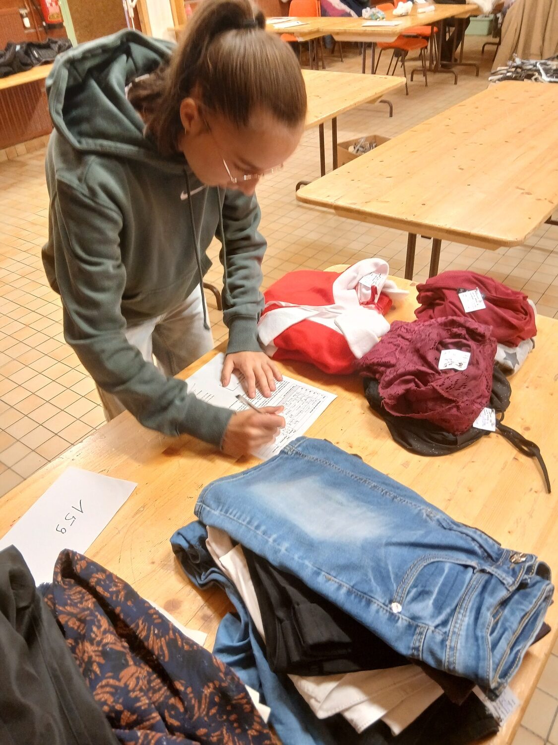 Les élèves ont pu découvrir et s’impliquer dans les différentes étapes de l’événement : accueil des déposants, contrôle et pliage des vêtements, mise en valeur des articles pour la vente, tri du linge pour le retour aux exposants, vérification des invendus et rangement de la salle.