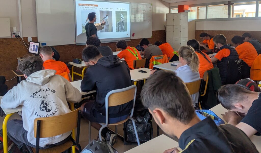 Les élèves de seconde NJPF ont rencontré Julien, intervenant de la LPO, pour aborder les enjeux de l’aménagement du territoire et découvrir les missions de l’association, avec un focus particulier sur la pie-grièche.