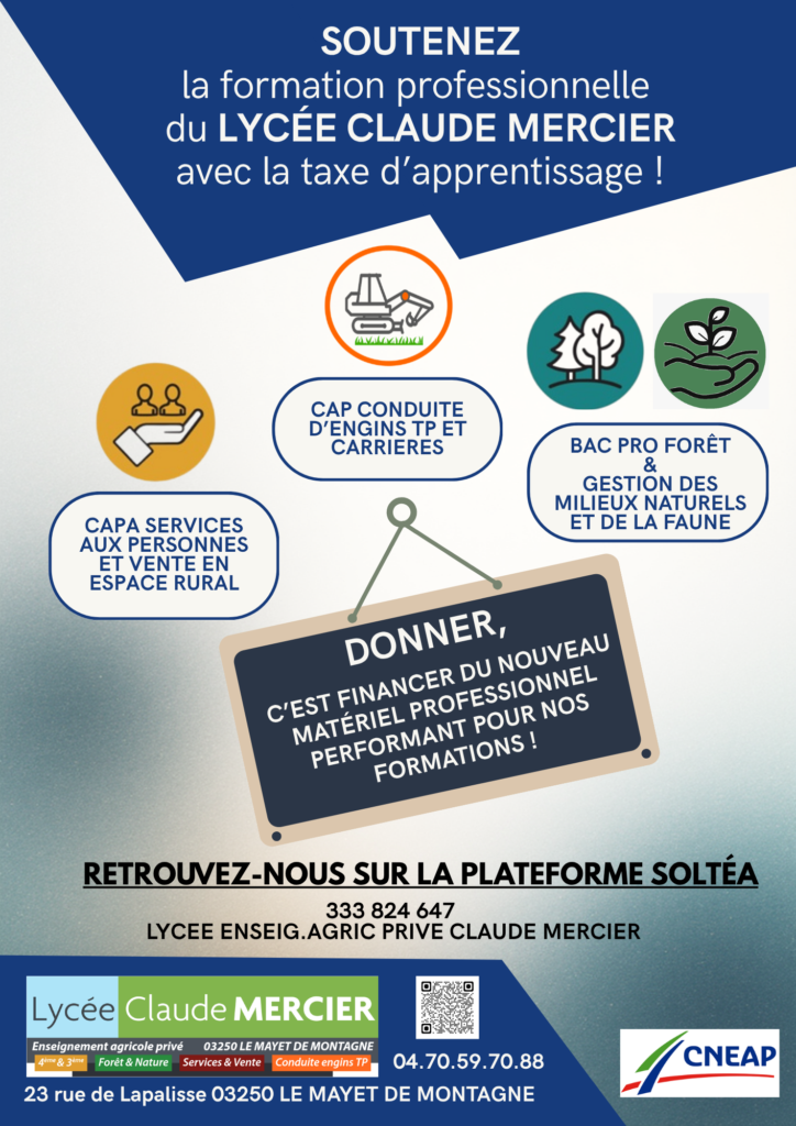 La taxe d’apprentissage constitue une ressource essentielle pour le LYCÉE CLAUDE MERCIER.